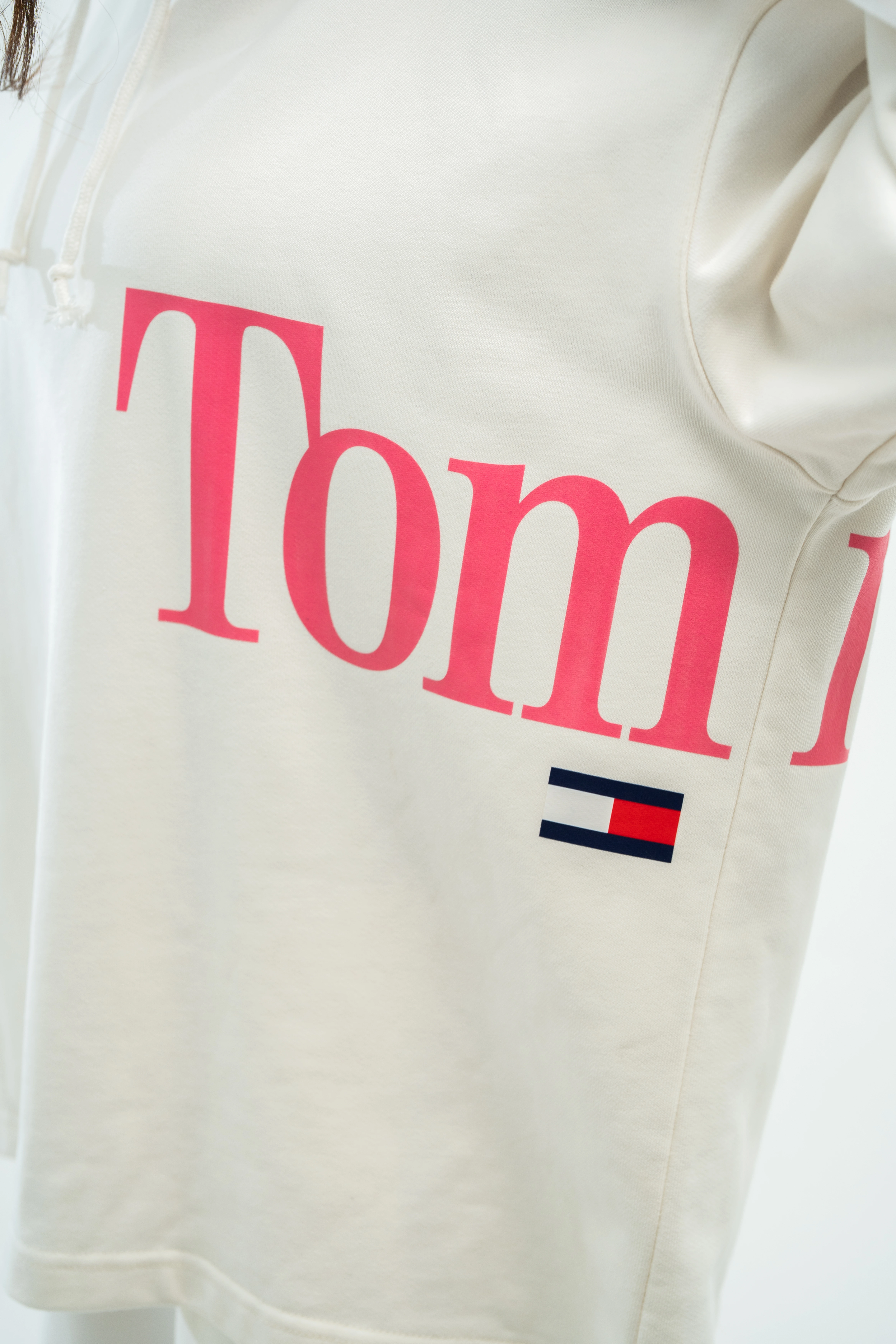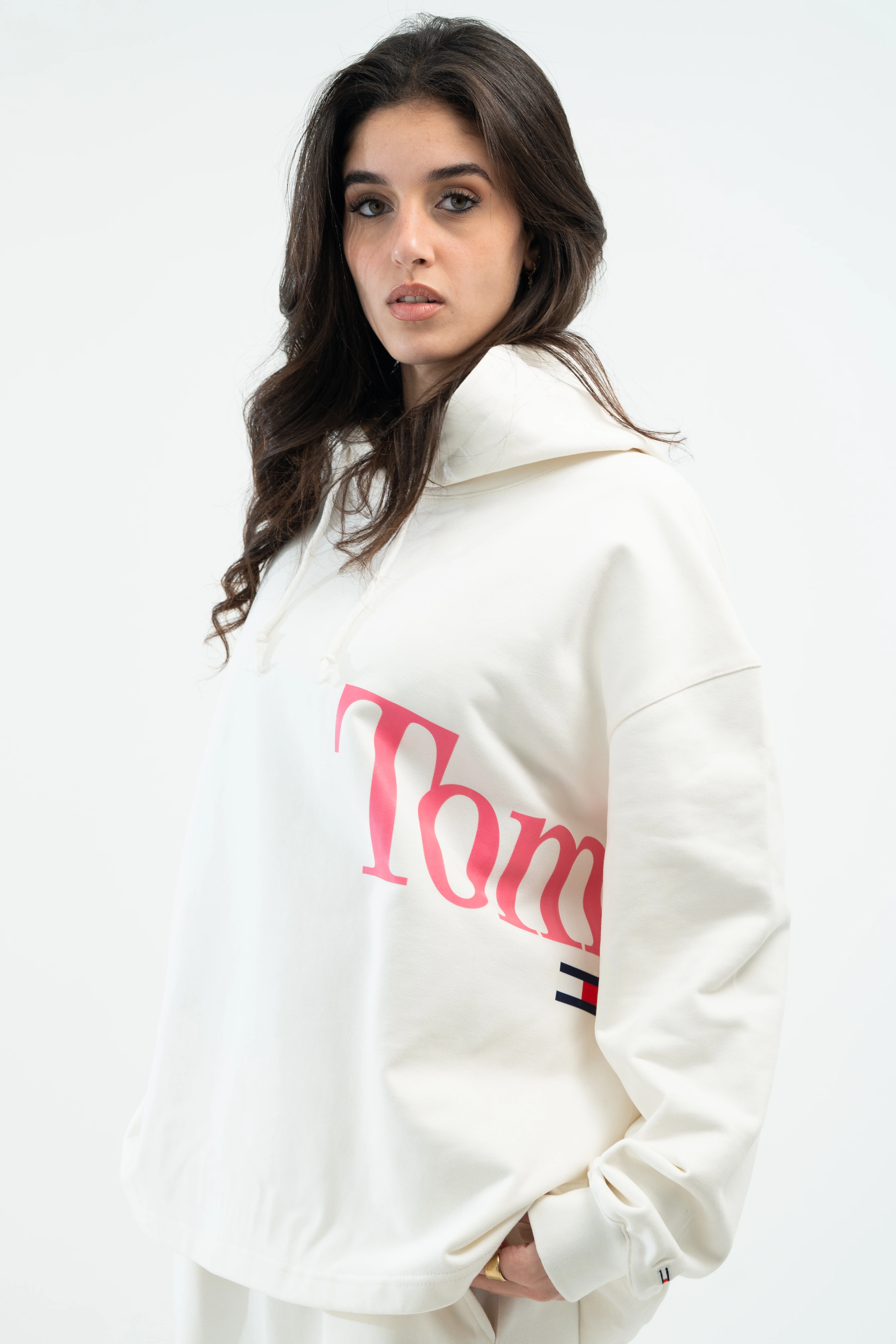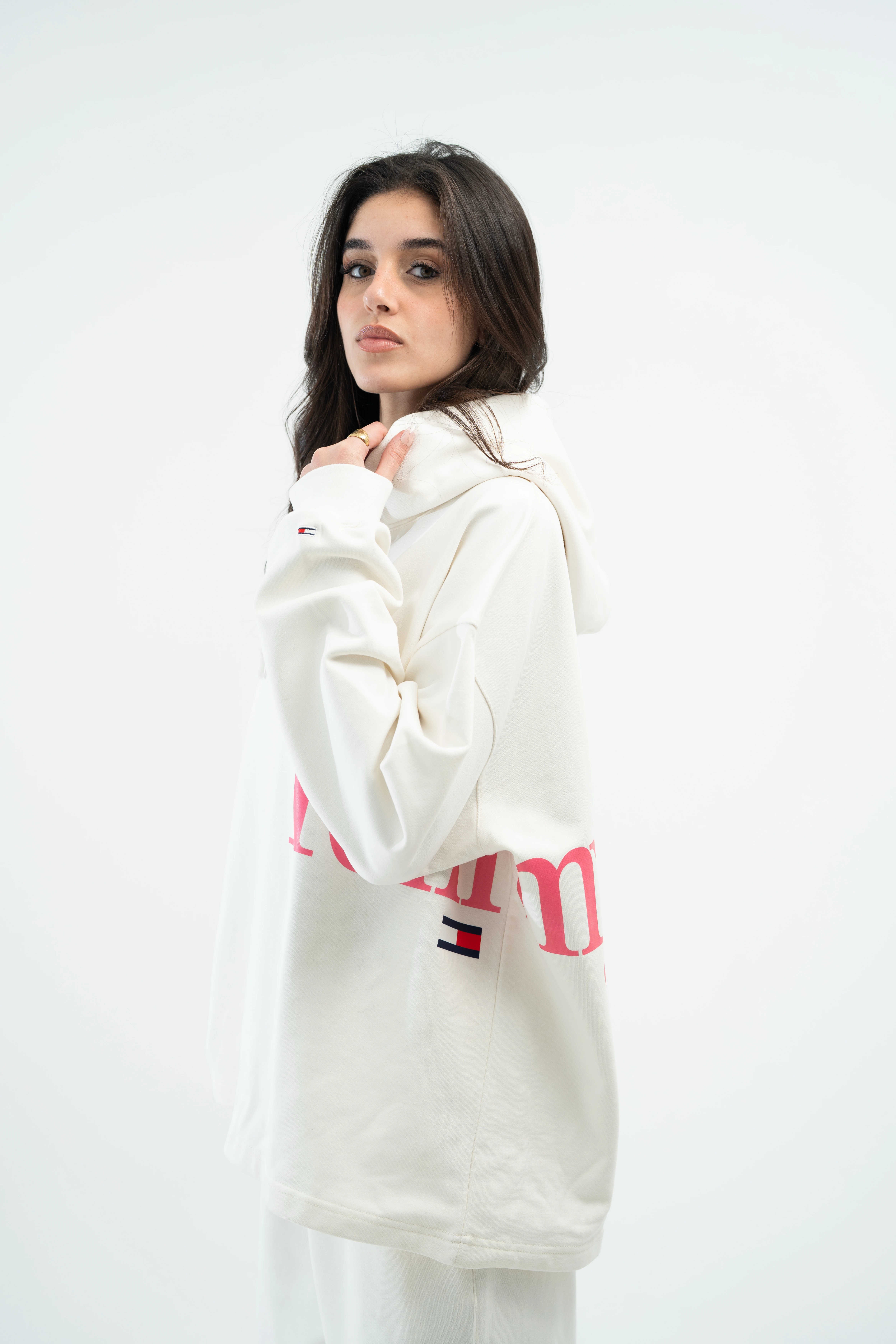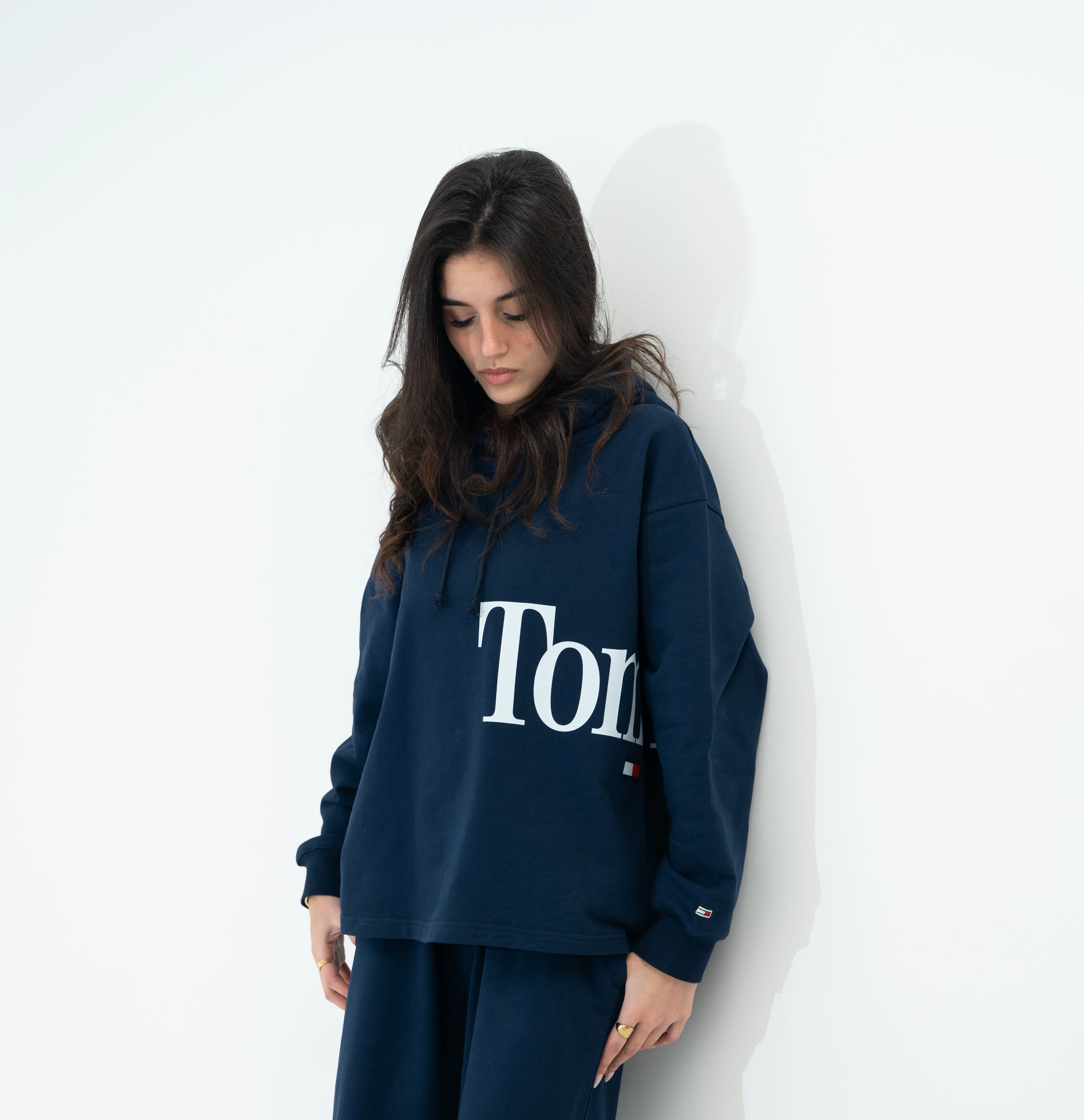 This flattering, super- hoody showcases a bold, get-you-noticed logo that wraps around from front to back – that's standout causal style sorted. Organic cotton blend Drawstring hooded neck Rib-knit cuffs and hem Tommy Jeans split logo Tommy Jeans branding Tommy Jeans flag & care79% organic cotton, 21% polyester